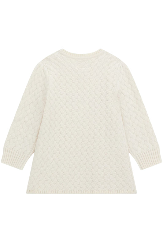 Abito da bambina in lana intrecciata con logo lettering ricamato a contrasto colore K5BK20Z0850