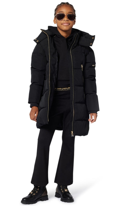 Giubbotto imbottito da ragazza con cappuccio e pelliccia