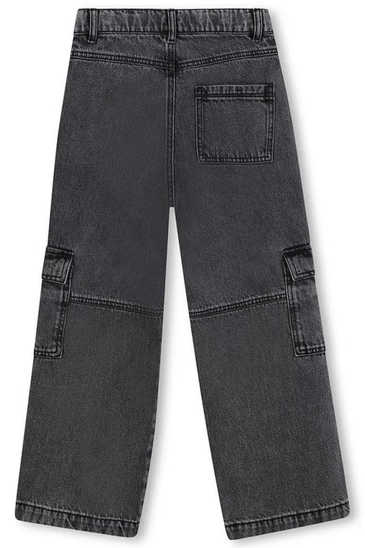 Jeans scuro da bambina e ragazza cargo in cotone a gamba larga R30451