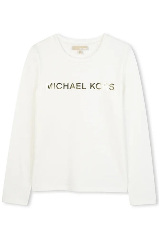 Maglia da bambina e ragazza in cotone con logo lettering laminato sul davanti R30488
