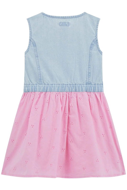 Vestito da bambina con corpetto in denim e tessuto sangallo K5GK17D5NZ0