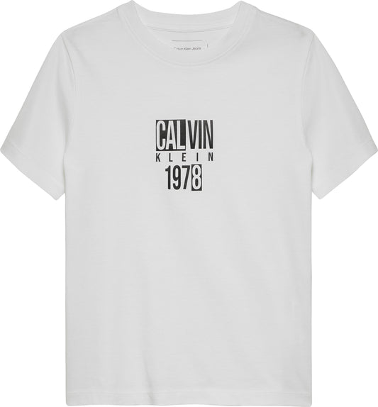 T-shirt girocollo da bambino e ragazzo in jersey di cotone con logo lettering a contrasto e data - IB0IB02456
