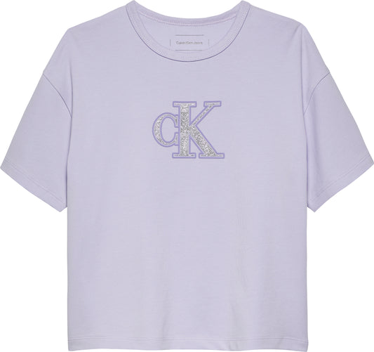 T-shirt da bambina e ragazza con logo monogram con brillantini sul davanti - IG0IG02863