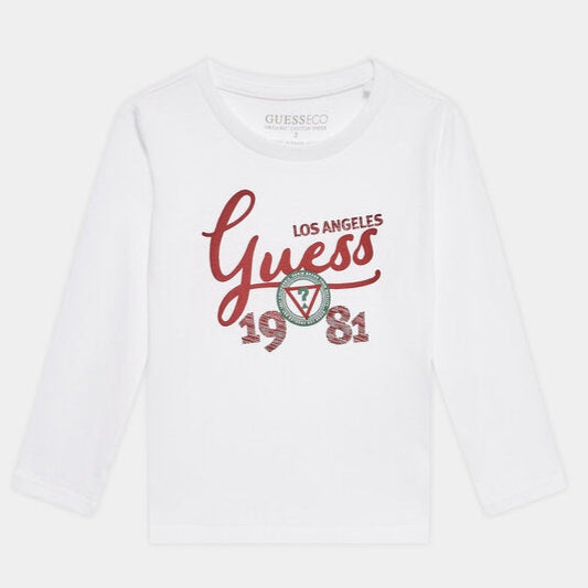 Maglione girocollo da bambino con maxi logo GUESS 1981 sul davanti