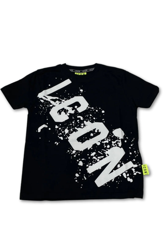 T-shirt da ragazzo girocollo con stampa con maxi logo lettering trasversale e schizzi IBKS00519