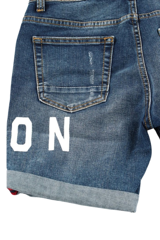 Bermuda da ragazzo con baffature, strappi frontali e logo lettering laterale IBDS00455