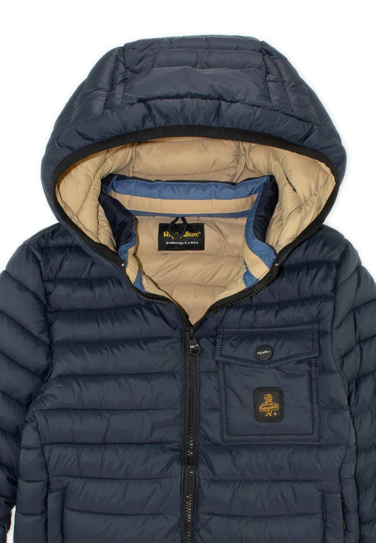 Giubbotto imbottito da ragazzo con cappuccio e tasca logata frontale
