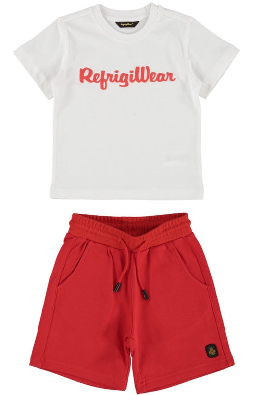 Completo da bambino due pezzi con t-shirt e bermuda con maxi logo lettering sul davanti 458DRMBS25