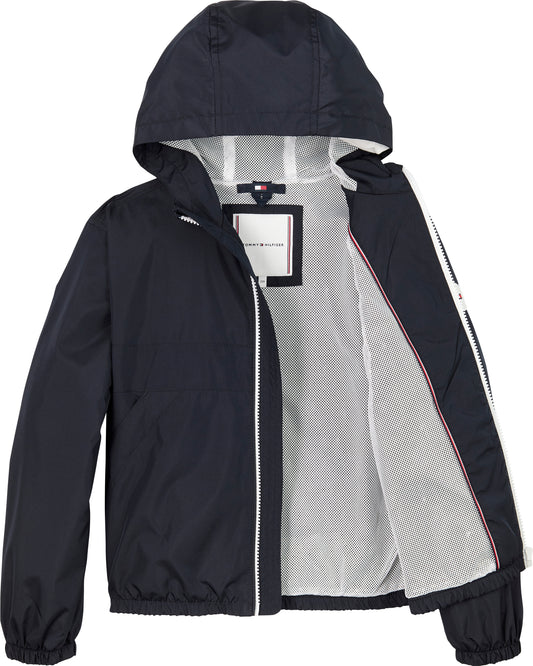Giacca a vento regular fit da bambino e ragazzo con cappuccio e logo lettering sul petto KG0KG08580