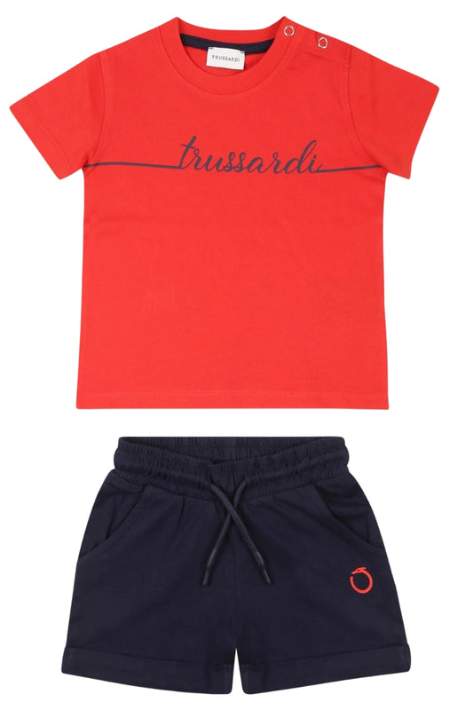 Completo da bambino t-shirt e bermuda con maxi logo frontale TBP25139CJ