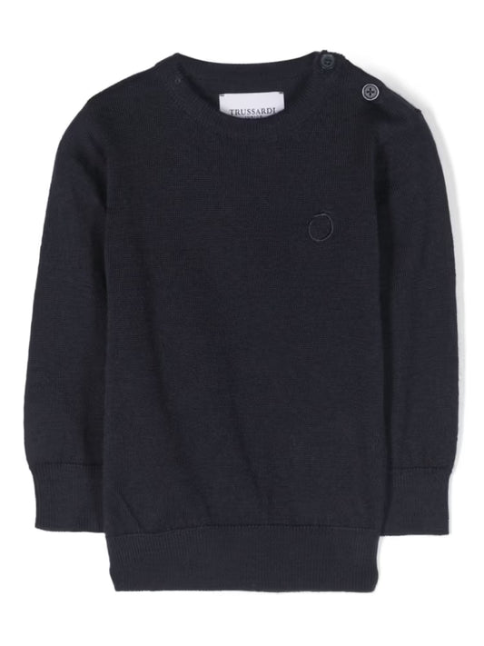 Maglione girocollo da bambino e ragazzo con targhetta logata sul retro