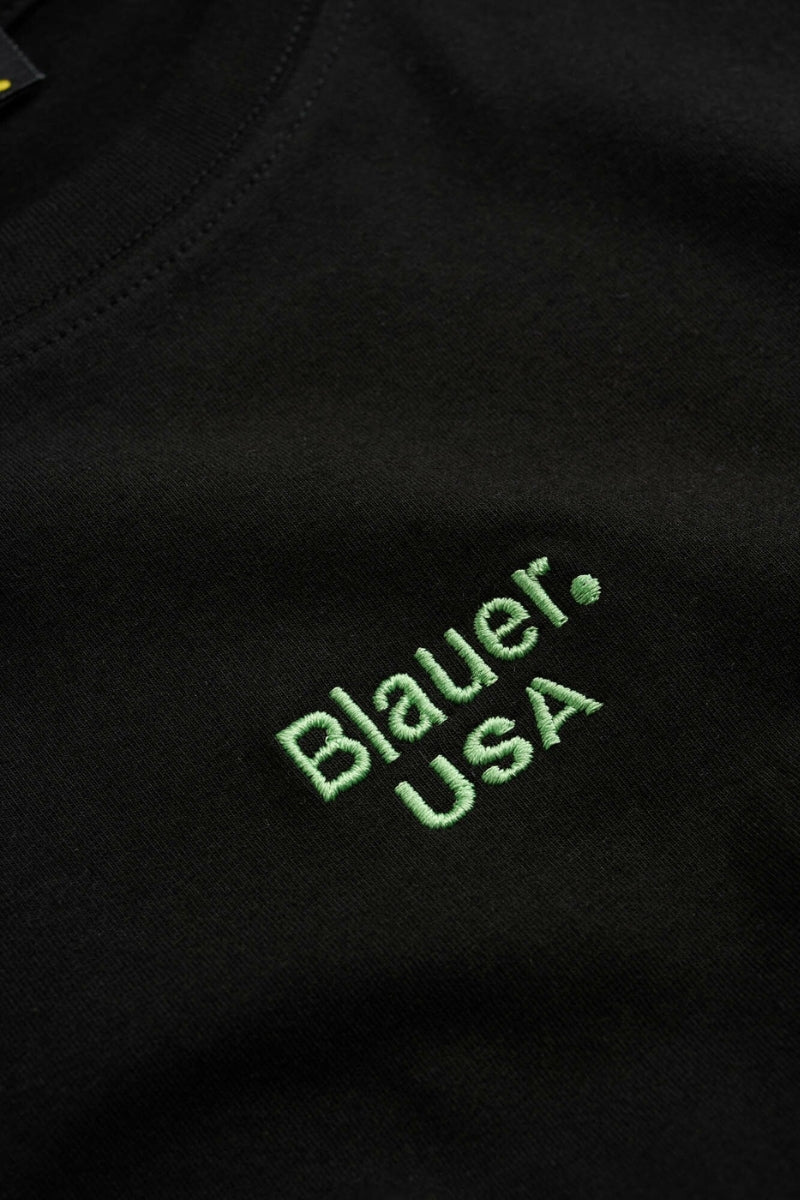Il design classico a girocollo, le maniche corte e la vestibilità regolare la rendono perfetta per tutti i giorni, da scuola al tempo libero. Sul davanti, un mini logo lettering Blauer aggiunge un tocco discreto ma distintivo. Ma è sul retro che il look esplode con personalità: il maxi logo lettering a contrasto cattura lo sguardo e racconta l’identità forte e dinamica del brand.