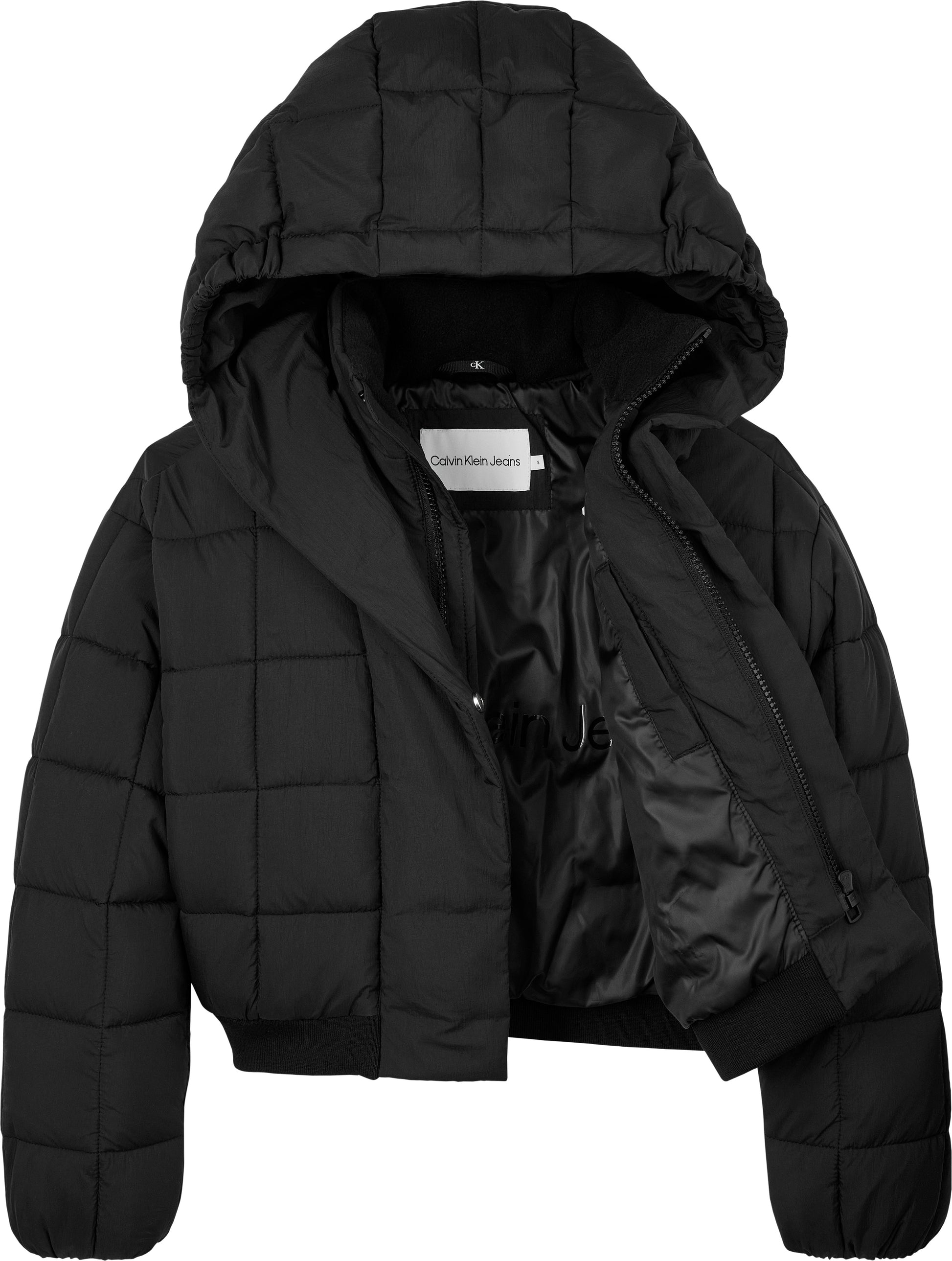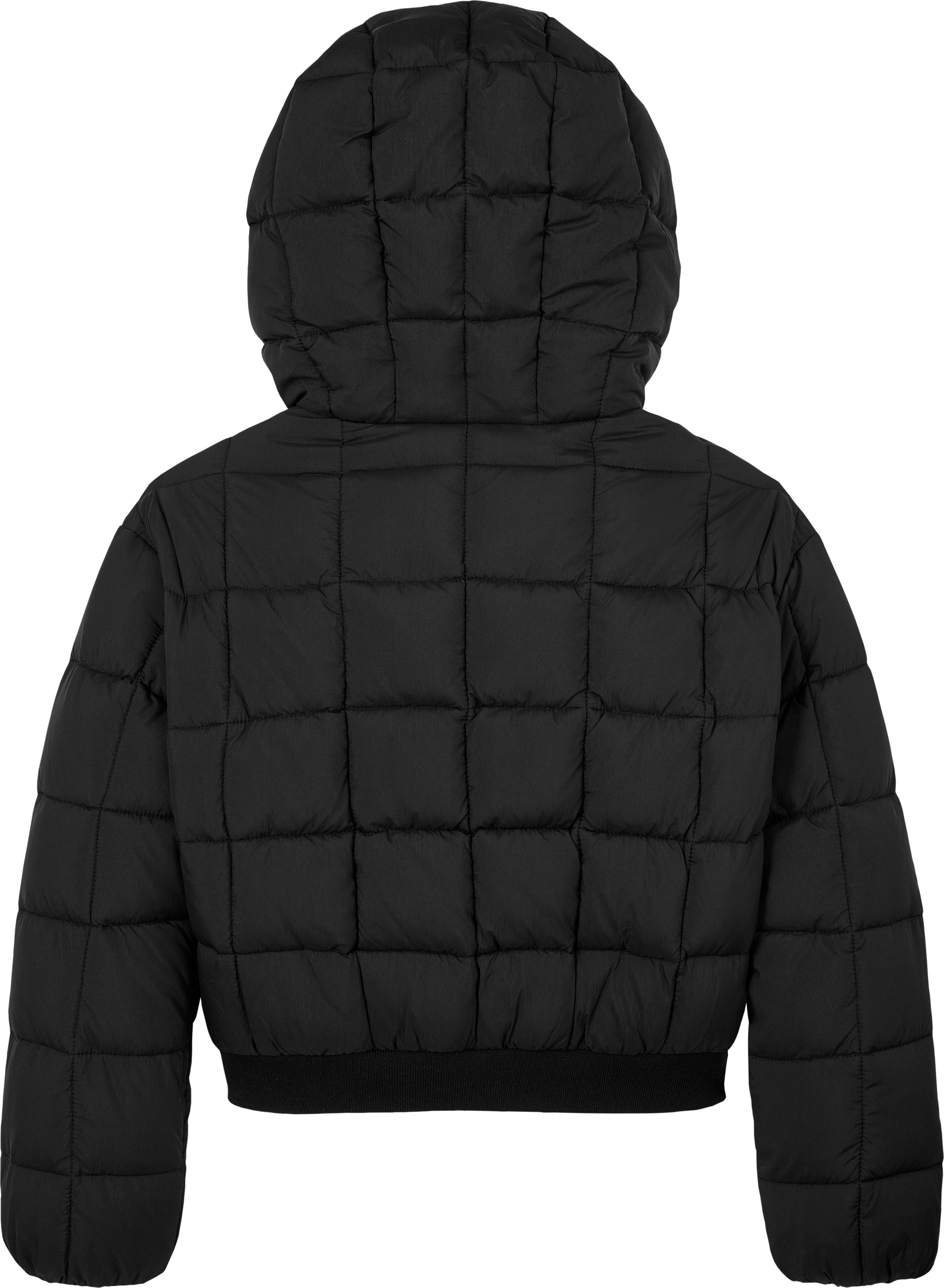 Giubbotto corto da ragazza con cappuccio trapuntato a quadri