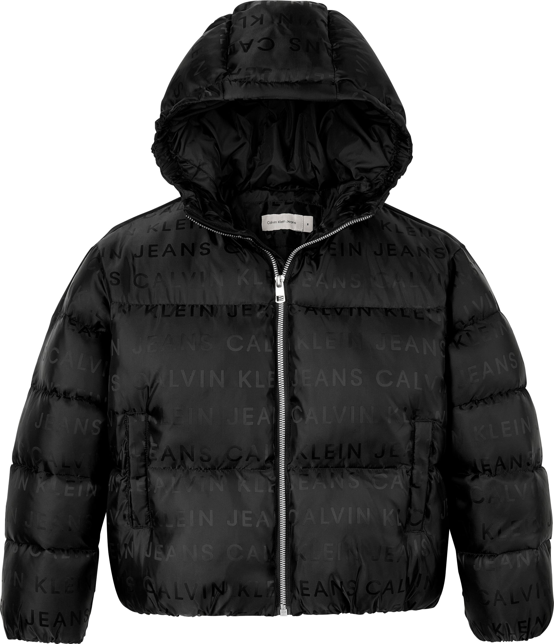 Giubbotto da ragazza con cappuccio e logo lettering all over