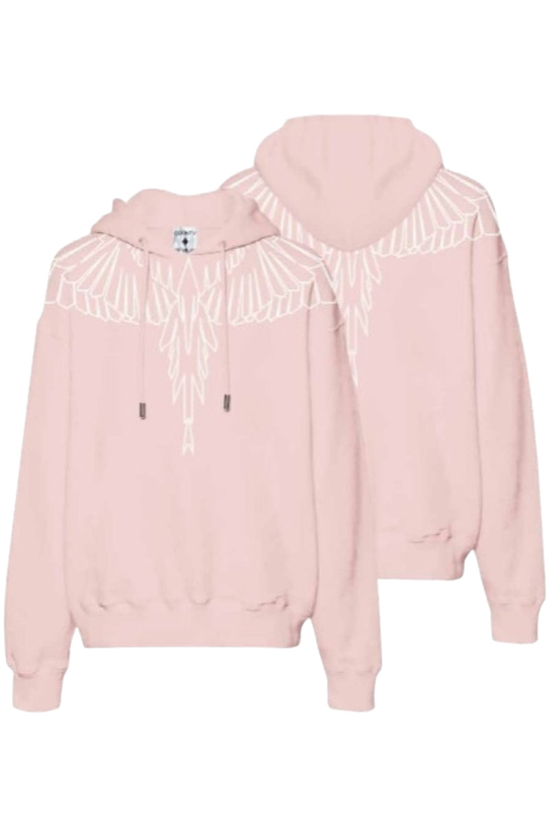Il cappuccio fisso con coulisse aggiunge un tocco sportivo e funzionale, mentre le maniche lunghe e i polsini e fondo elasticizzati a costine garantiscono un fit stabile e confortevole. A rendere questo modello davvero unico è la stampa iconica perfilo ali, proposta a contrasto sul fronte e sul retro, un simbolo inconfondibile dell’estetica County of Milan che dona personalità immediata.