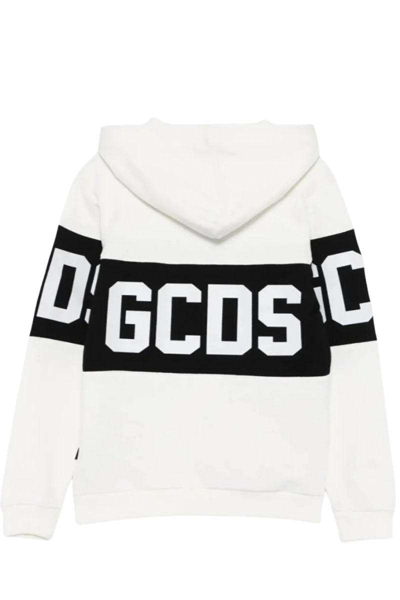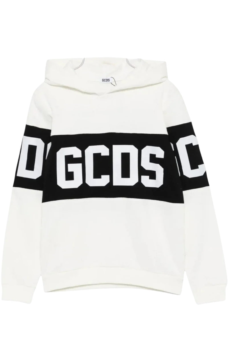 A dominare la scena, la maxi banda con logo lettering GCDS a contrasto che attraversa il fronte e il retro: un dettaglio grafico forte, immediatamente riconoscibile, che racconta l’identità del brand senza bisogno di presentazioni.
