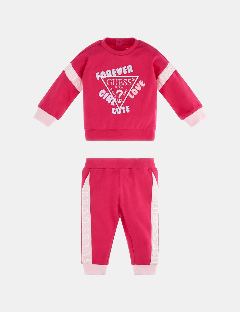 Comfort e stile camminano di pari passo con Guess: il completo che ti proponiamo è l'ideale per gli outfit quotidiani della tua bambina.