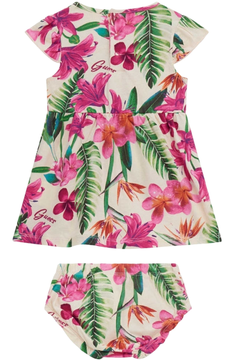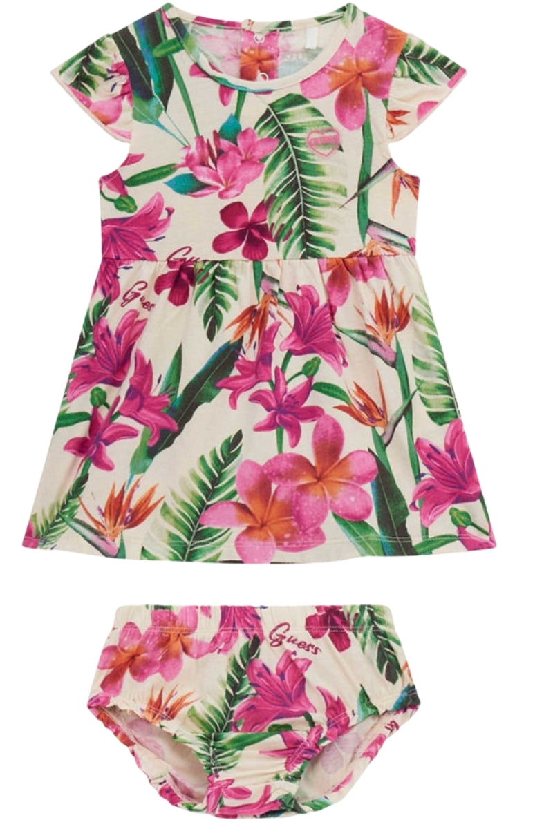 Con Guess, anche i look da neonata raccontano storie di dolcezze e di fiori che non smettono mai di sbocciare.