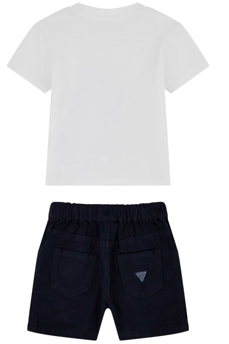 Un concentrato di tenerezza e stile in formato mini! Questo adorabile completo 2 pezzi da neonato GUESS unisce praticità e design giocoso, perfetto per le giornate più calde della stagione primavera/estate.