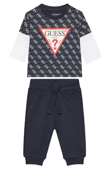 Avvolgente come un abbraccio e ricca di dettagli di stile, la tuta 2 pezzi da neonato Guess è pensata per accompagnare con morbidezza e carattere i primi passi nel mondo.