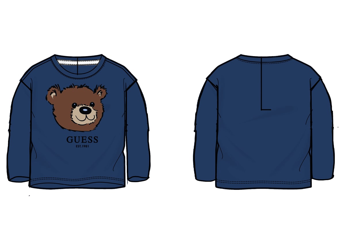 A rendere unico questo capo è la stampa con orsacchiotto e logo Guess sul davanti: un dettaglio tenero e stiloso che aggiunge un tocco giocoso al look del tuo piccolo.