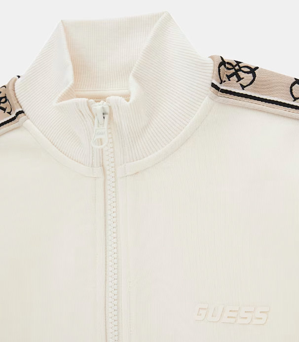 Il collo alto a costine protegge dal freddo con stile, mentre la vestibilità regular e le maniche lunghe assicurano libertà di movimento in ogni occasione. A fare la differenza è il dettaglio di tendenza: le bande laterali con logo 4G Guess, che donano un look iconico e riconoscibile.