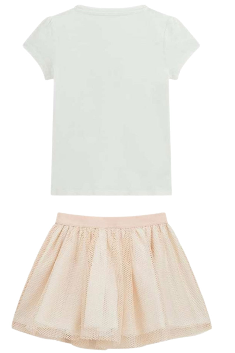 Completo da bambina con gonna a rete e logo lettering con paillettes K5RG06K6YW0