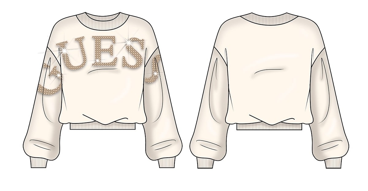 Il taglio girocollo classico, le maniche lunghe e la linea essenziale la rendono ideale da indossare tutti i giorni, ma a fare la differenza è il maxi logo Guess sul davanti, arricchito da paillettes luminose che catturano la luce e l’attenzione.