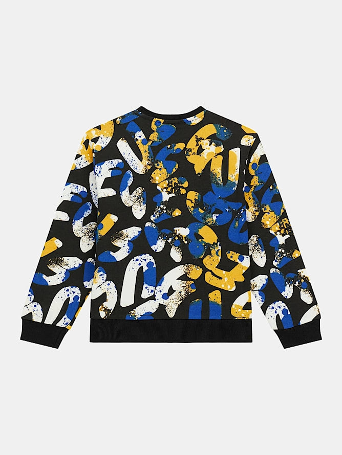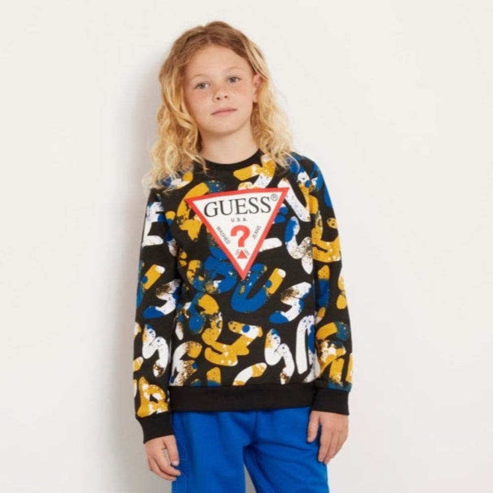 Felpa girocollo da ragazzo a fantasia con maxi triangolo logato sul davanti