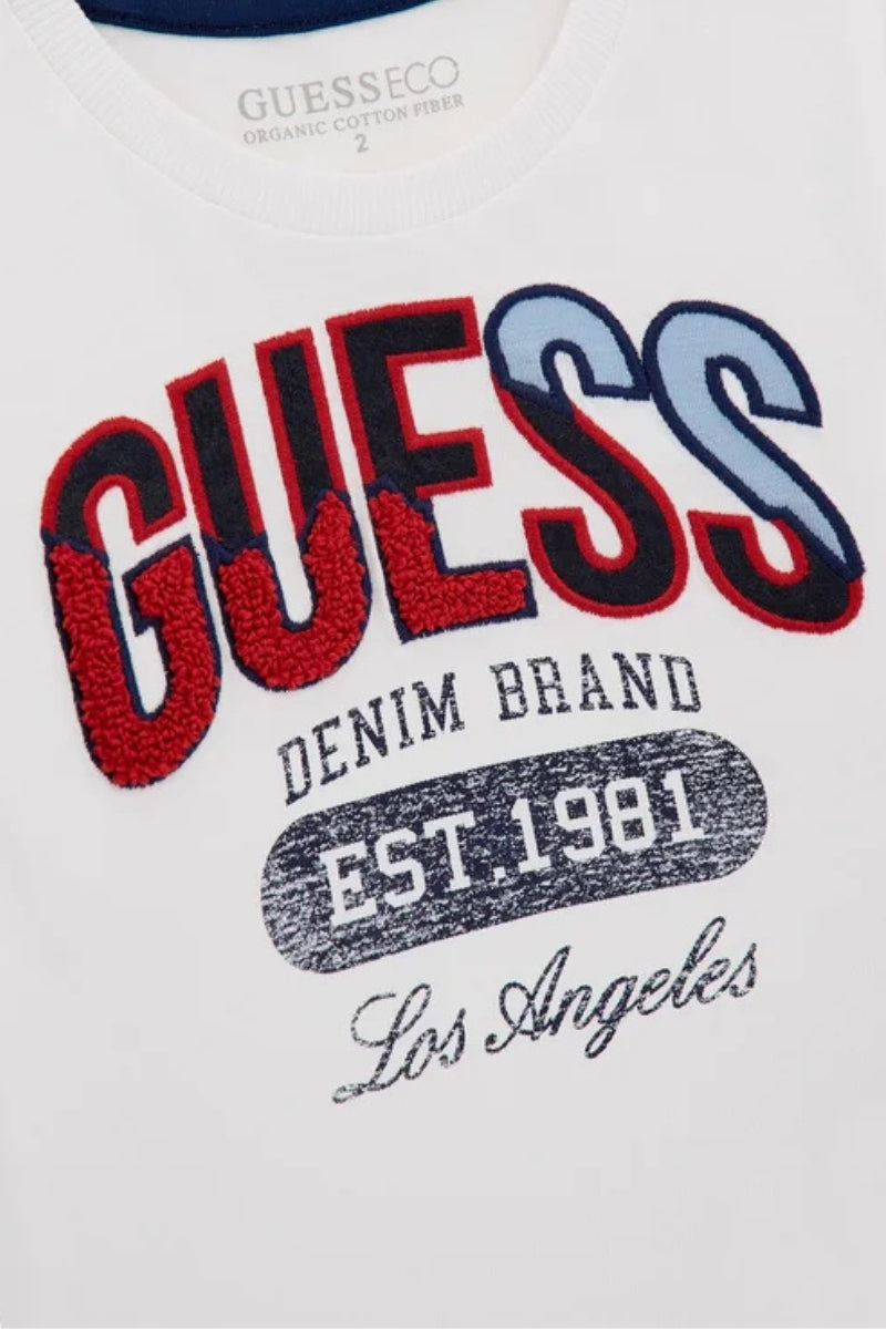 Una maglia versatile, confortevole e di tendenza: ideale per completare l’outfit quotidiano del tuo piccolo con l’inconfondibile stile Guess.
