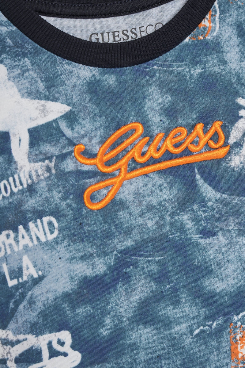 La t-shirt girocollo a maniche corte è animata da una vivace stampa a tema surf, che richiama il mood delle onde californiane, mentre il logo lettering a contrasto aggiunge un tocco distintivo firmato Guess. I bermuda abbinati completano il look con una comoda cinta elastica in colore a contrasto, per una vestibilità dinamica e moderna.