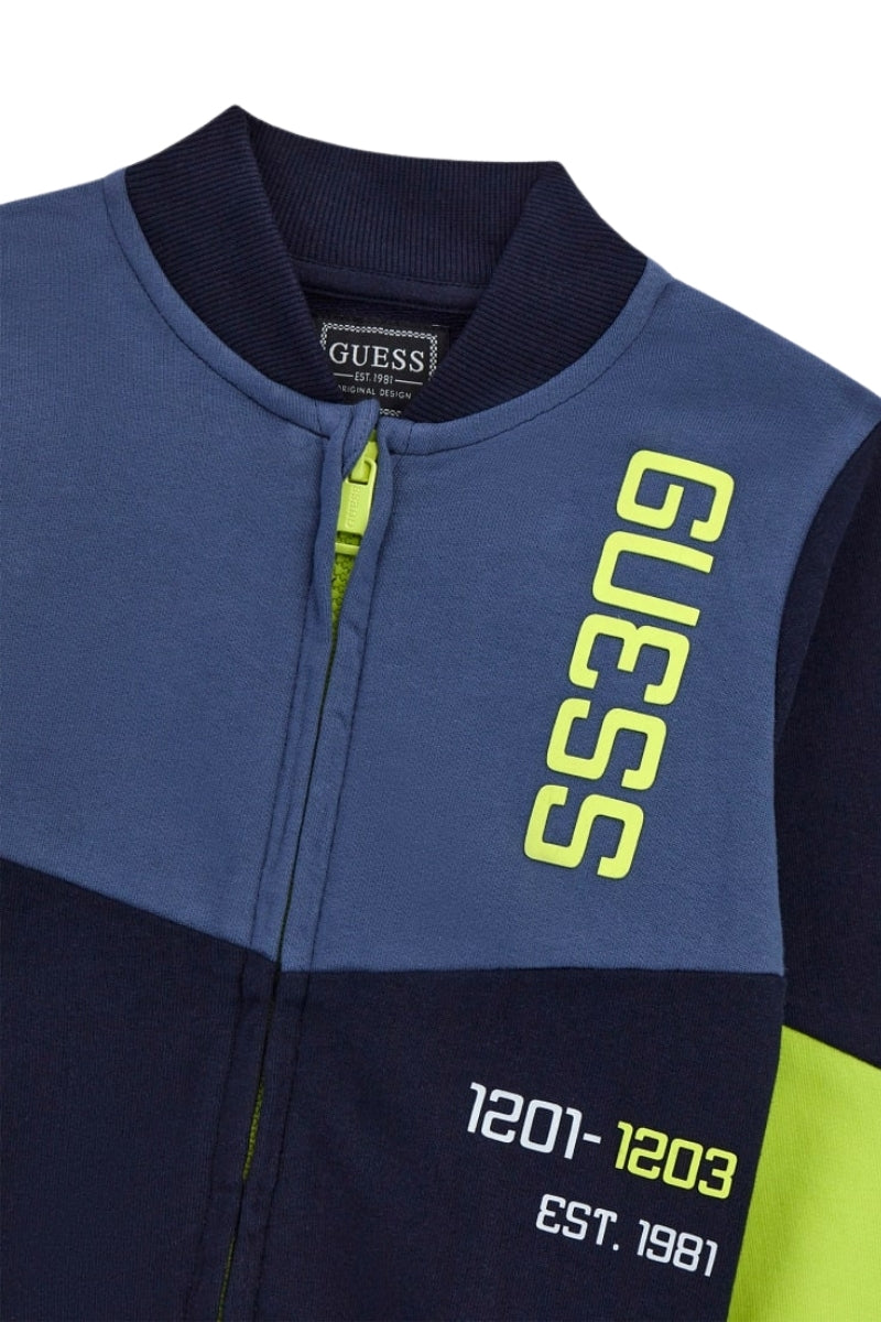 Pensata per piccoli esploratori con grande stile, la tuta da bambino GUESS è il perfetto equilibrio tra comfort e carattere. Composta da due pezzi coordinati, unisce una felpa con zip integrale dal design dinamico e un pantalone con vita elasticizzata e coulisse, ideale per accompagnare ogni movimento con libertà e sicurezza. Il collo e polsini elasticizzati assicurano una vestibilità sempre perfetta, mentre i dettagli a contrasto regalano un tocco sporty e contemporaneo. Il logo lettering laterale firma il look con l’inconfondibile identità GUESS.
