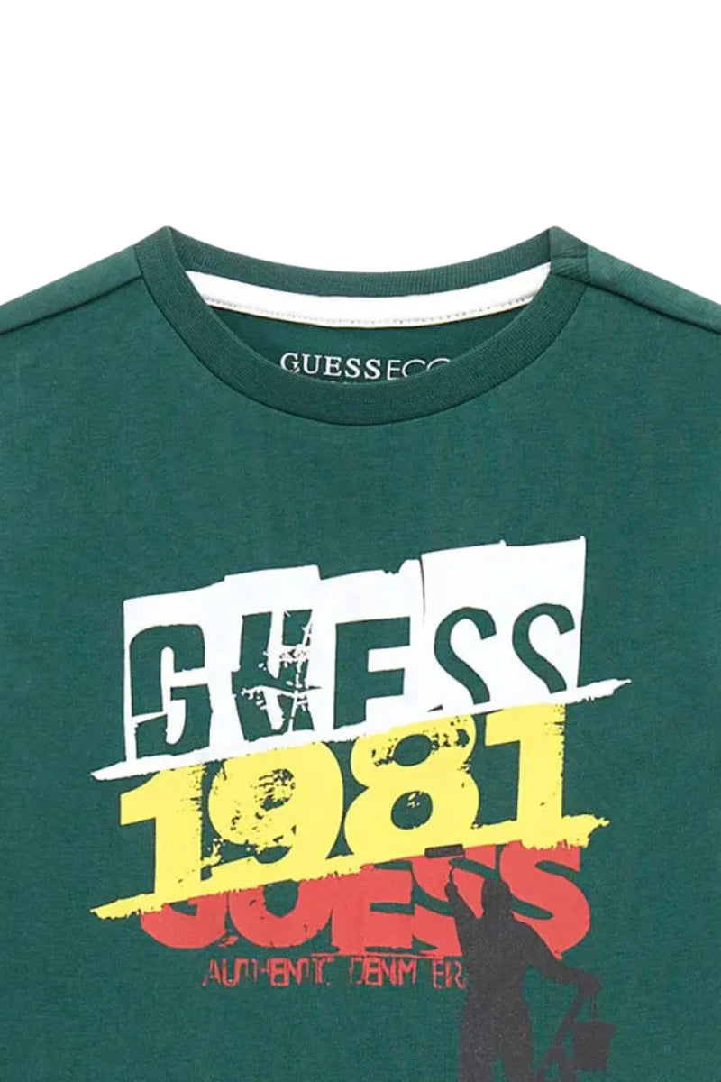 Per i piccoli che crescono con grinta e allegria, GUESS firma una T-shirt perfetta per l’estate: realizzata in morbido cotone, con girocollo e maniche corte, garantisce libertà nei movimenti e massimo comfort durante ogni gioco all’aria aperta. La maxi stampa logata a contrasto e le cuciture colorate danno un tocco vivace e moderno, trasformando un capo basic in un'esplosione di stile. Pratica, cool e 100% GUESS: la T-shirt ideale per accompagnare ogni avventura con personalità.