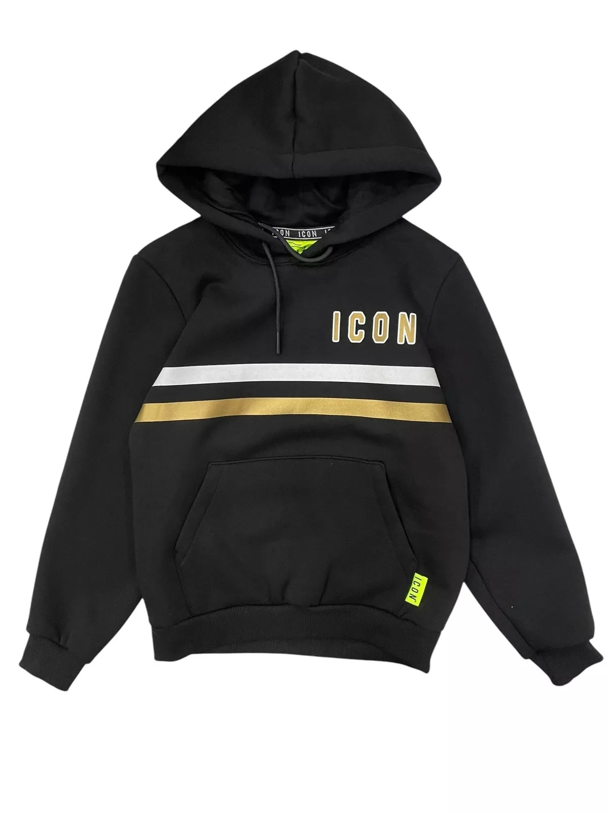 Felpa con cappuccio da ragazzo con strisce sul petto e logo frontale