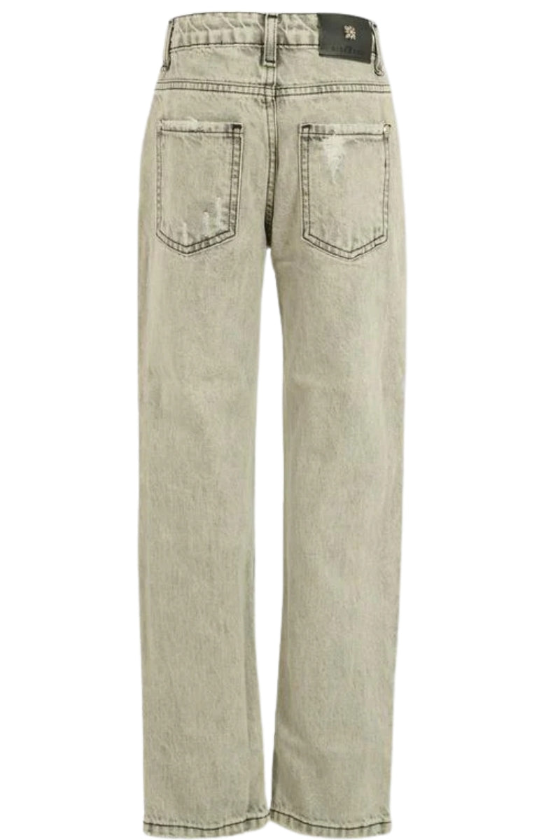 Il modello a gamba larga dona un look moderno e disinvolto, mentre il design a cinque tasche mantiene l’anima classica del denim. La chiusura con zip e bottone garantisce praticità, e gli strappi frontali aggiungono un carattere deciso e contemporaneo.