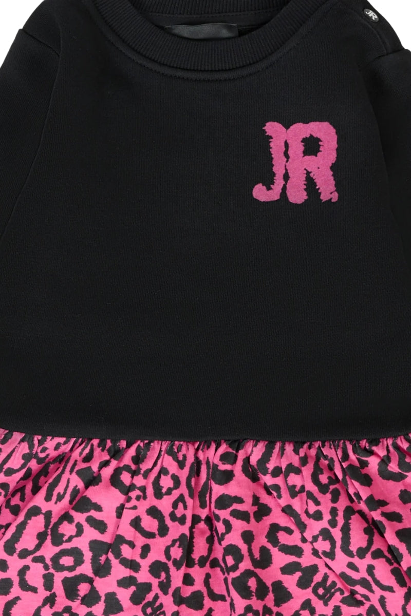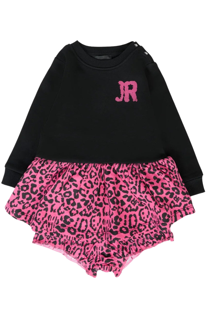 Abito da neonata con balza con stampa animalier a contrasto RIA25120VE