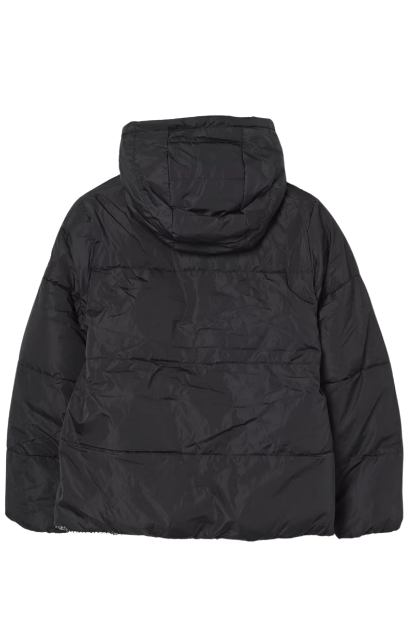 Giubbotto piumino da ragazza reversibile con lato a tinta unica e lato con pattern logo monogram R30456/M15
