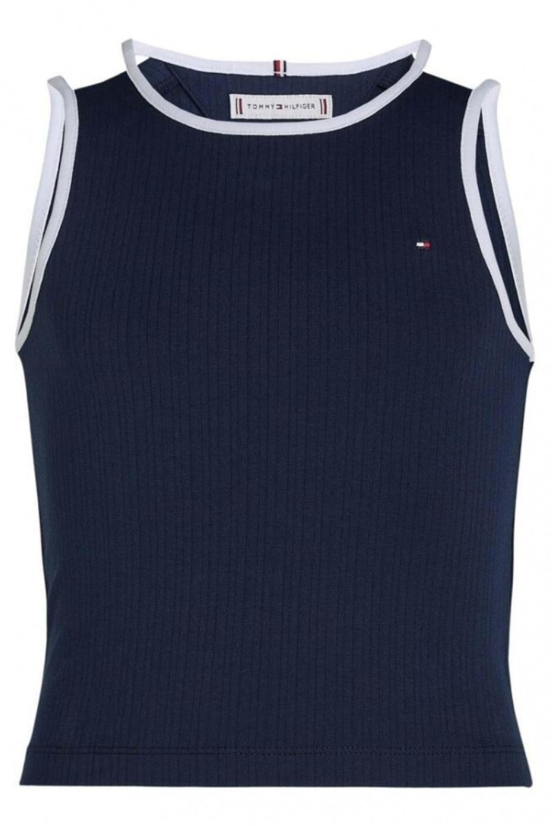Questa canotta da ragazza firmata Tommy Hilfiger è realizzata in morbido cotone a costine, perfetto per offrire comfort e traspirabilità anche nelle giornate più calde. I profili a contrasto donano un tocco dinamico e fresco, mentre la celebre bandierina ricamata sul petto firma il look con un dettaglio intramontabile e subito riconoscibile. La vestibilità essenziale la rende facile da abbinare, perfetta con jeans, shorts o gonne per un outfit casual e sempre di tendenza.
