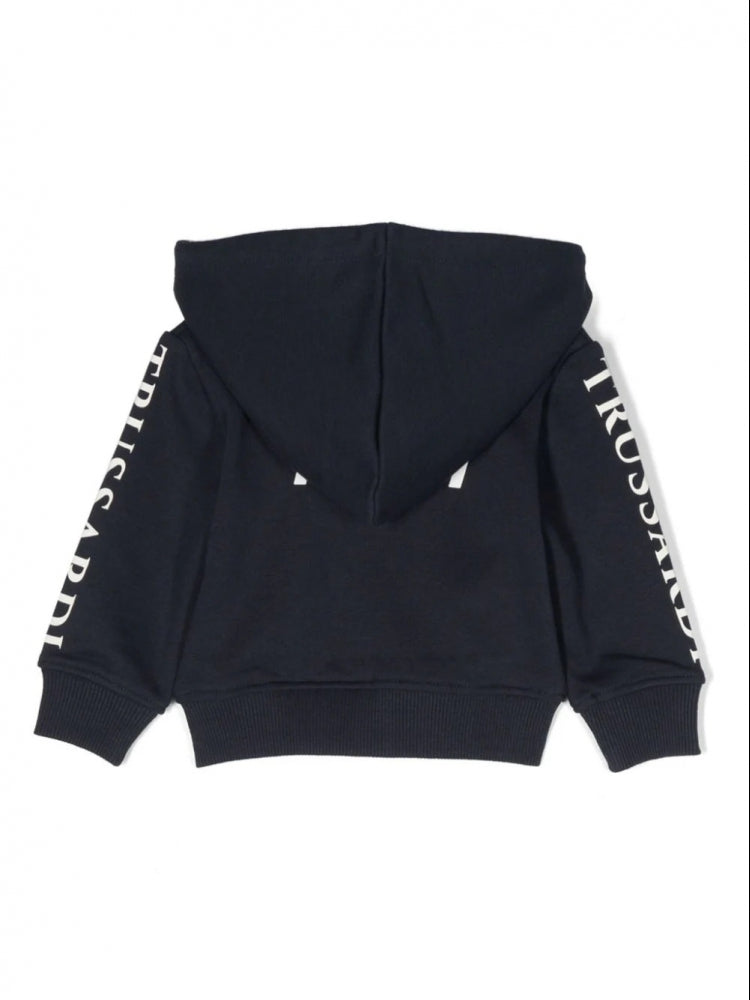 Completa i look casual e sportivi del tuo bambino con l'iconica felpa con cappuccio firmata Trussardi!